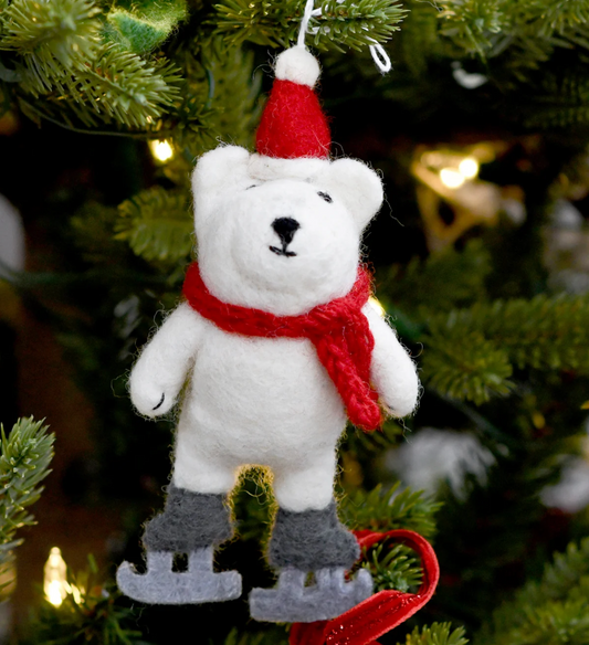 White Christmas Bear with Ice Skates