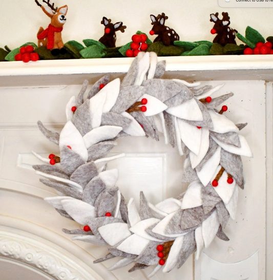 Christmas Wreath Grey and White Leaves